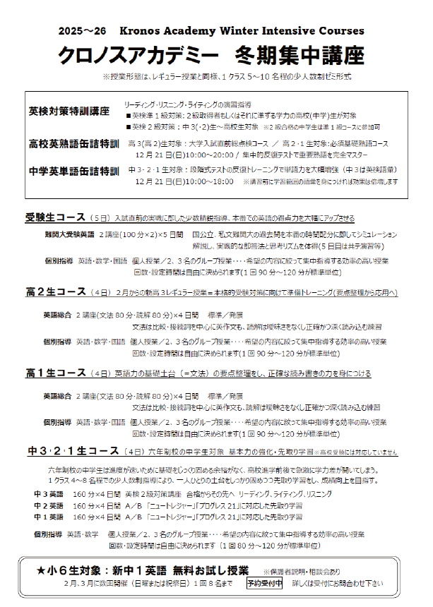 Home » 未分類 » 2025年冬期講習のご案内